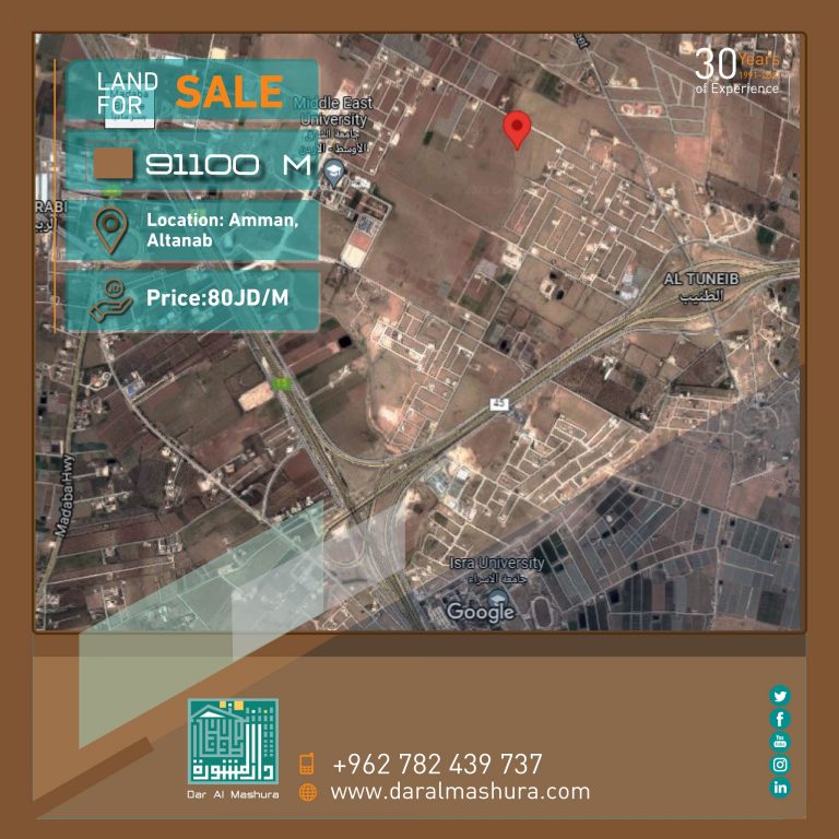 مساحة الارض: 91100 متر – سعر 80 دينار