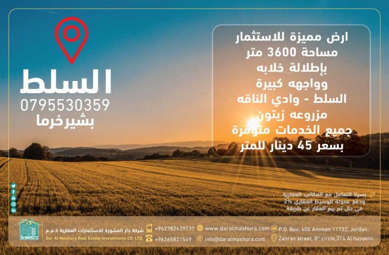 سعر الارض 45 دينار للمتر