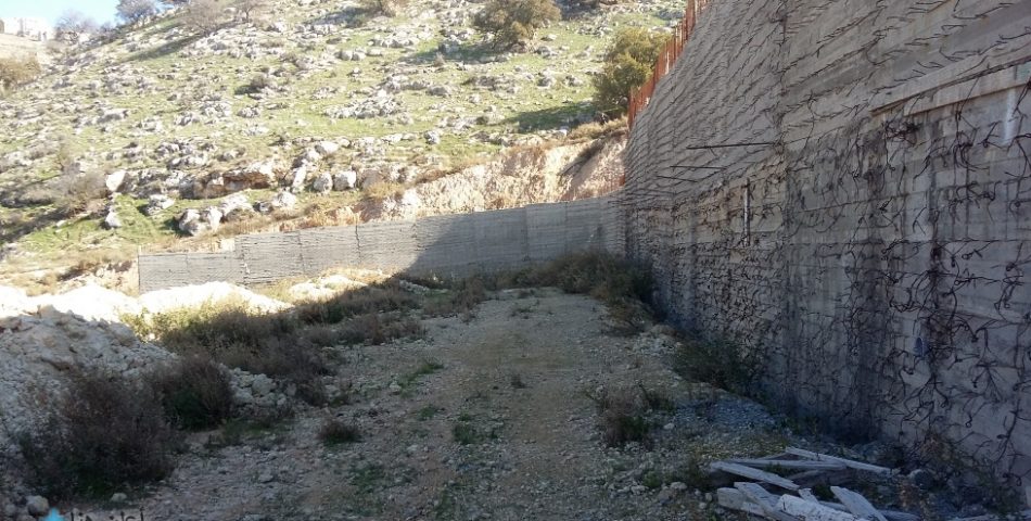 قطعة مربعة الشكل تقريباً، جدار استنادي مبني و جاهز، ضمن مشروع إسكان التربية