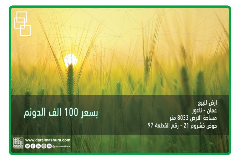 ارض للبيع – ناعور ناعور, حوض خشروم 21, ناعور وصف العقار ارض للبيع عمان – ناعور مساحتها 8 دونم و 33 متر حوض خشروم 21 بجانب مطعم الزوار رقم القطعة 97 لمزيد من المعلومات السيد عمر 0789193130 مشاركة : تواصل مع المالك الإسم الكامل* بريدك الالكتروني* رسالتك* إرسال رسالة خاصة عقارات متشابهة للبيع275,000 دينارللبيع210,000 دينارللبيع150,000 دينار