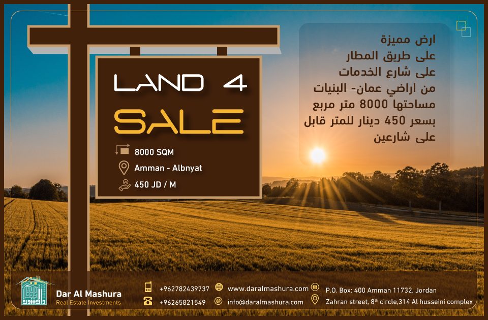 👈👈 السعر : 450 دينار اردني للمتر المربع