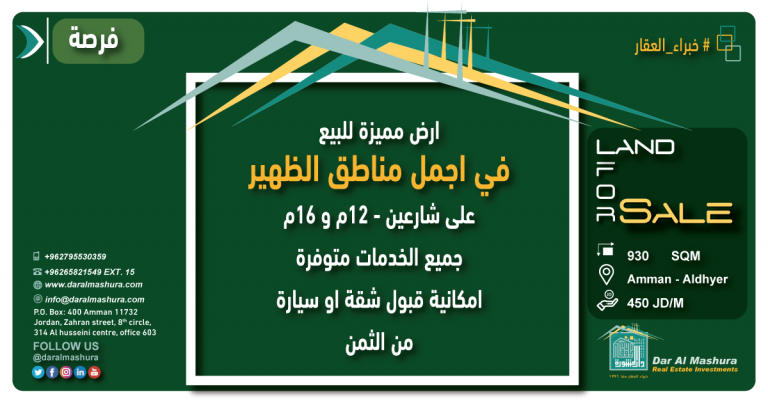 ارض مميزة في الظهير بسعر لقطة