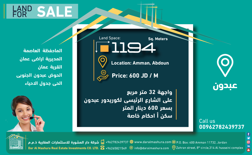 كما يتوفر لدينا مزيد من العروض المميزة الاراضي للسكن او الاستثمار في اجمل مناطق عمان الغربية وباسعار مميزة لمزيد من الصور والتفاصيل نرجو التواصل مع #خبراء_العقار