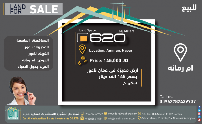 مساحة الارض 620 متر