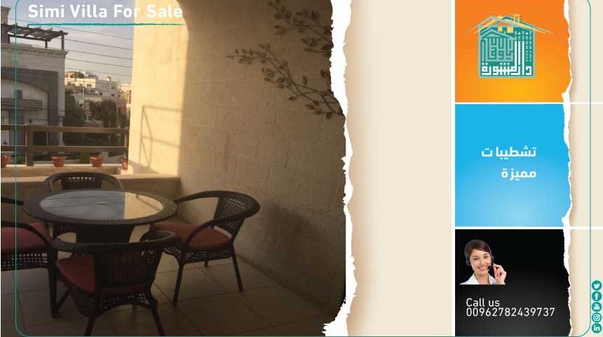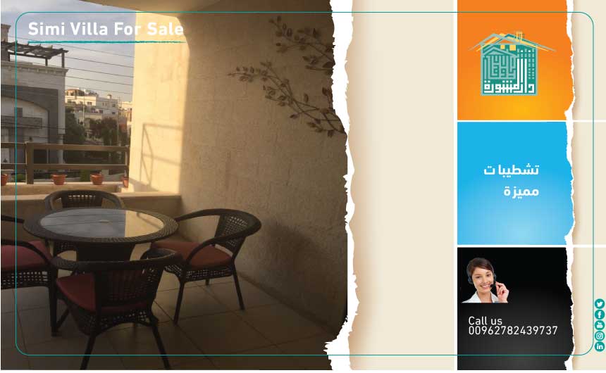 تدفئة مركزية – تكييف – حديقة – كراج – تراسات وجلسات خارجية – البناء حجر معزول