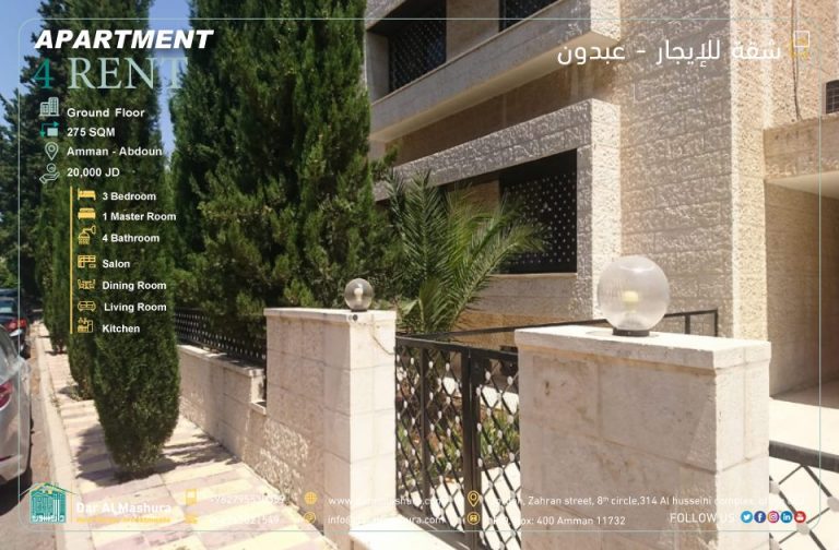 شقة ارضية مميزة فارغ او مفروش للايجار عبدون