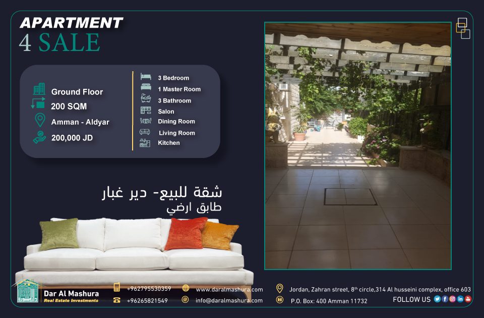 شقة رائعه طابق ارضي للبيع دير غبار