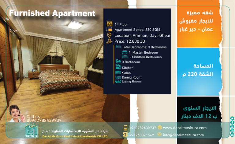 كما يتوفر لدينا مزيد من العروض المميزة من الشقق المفروشة والفارغة في اجمل مناطق عمان الغربية وباسعار مميزة لمزيد من الصور والتفاصيل نرجو التواصل مع #خبراء_العقار