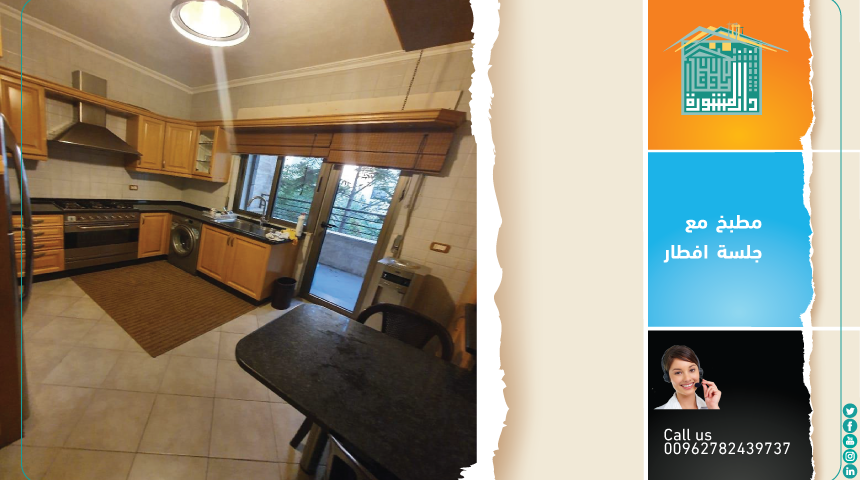 غرف: صالون وطعام ومعيشة ومطبخ راكب خشب مع جلسة افطار