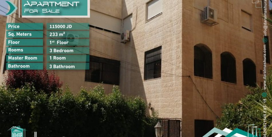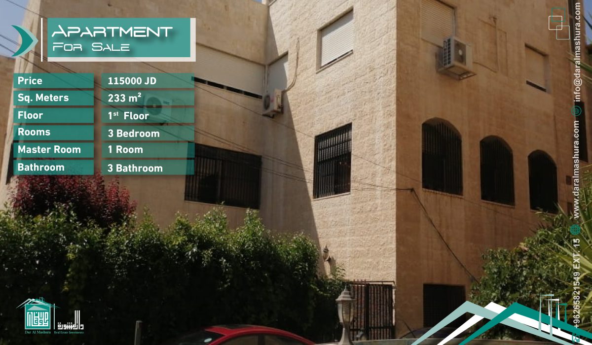 شقة طابقية فخمة 233 متر للبيع – عبدون