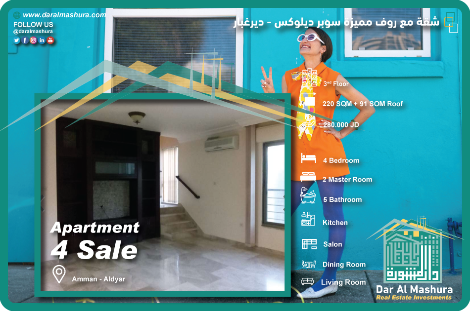 مساحة الشقة 220 مر ومساحة الروف 91 متر