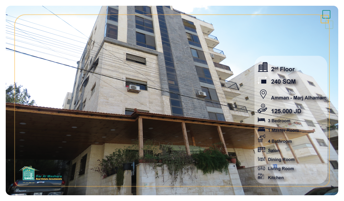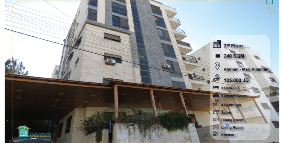 شقة طابقية مميزة باطلالة رائعه للبيع في مرج الحمام