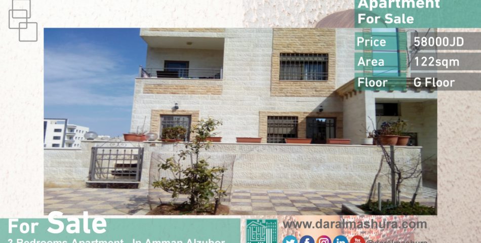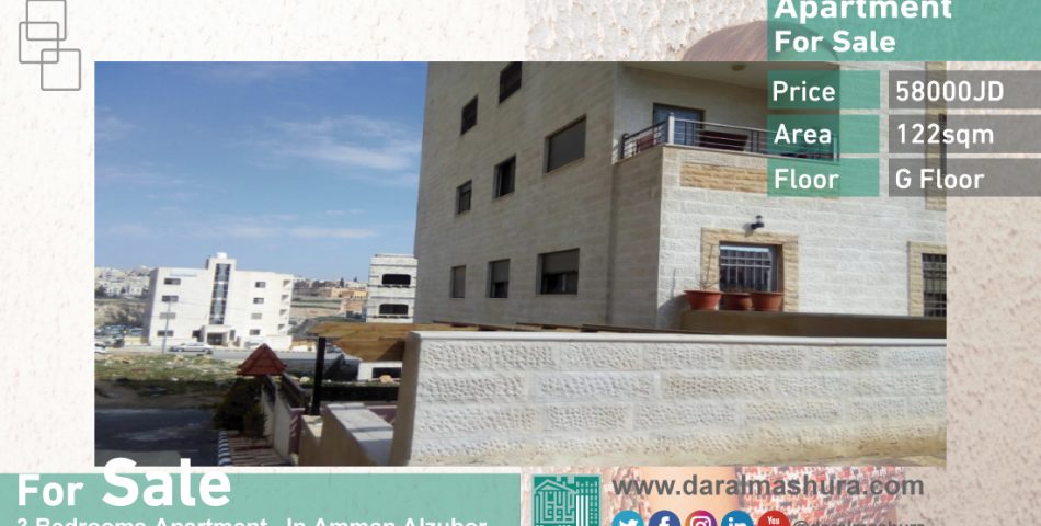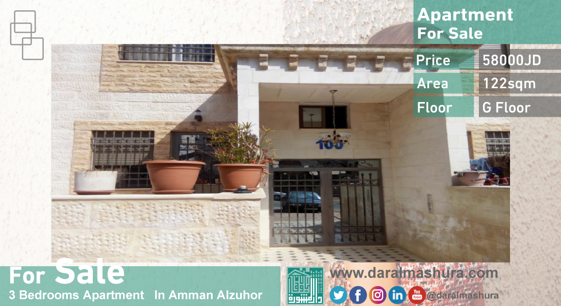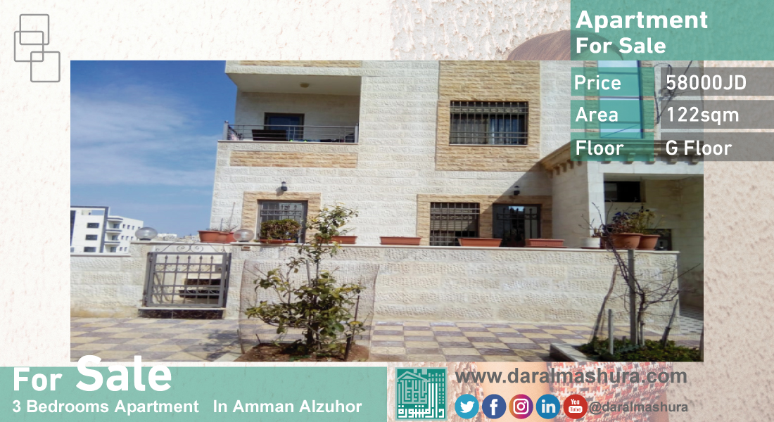 شقة طابق ارضي للبيع – جبل الزهور جبل الزهور, جبل الزهور وصف العقار شقة مميزة للبيع عمان – جبل الزهور مساحتها 122 متر طابق ارضي مع ترس كبير 3 غرف نوم واحده ماستر معيشة وصالون ومطبخ راكب للشقة 3 مداخل – مصعد وبئر ماء لمزيد من المعلومات 0791490021 مشاركة : مزايا العقار الخدمات متوفرةالكراجاتبئر ماءتدفئةمستودعمطبخ راكب تواصل مع المالك الإسم الكامل* بريدك الالكتروني* رسالتك* إرسال رسالة خاصة