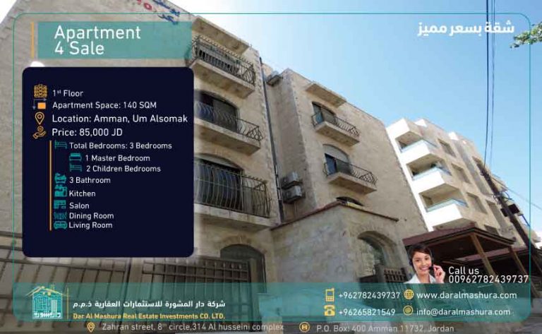 سعر الشقة 85 الف دينار