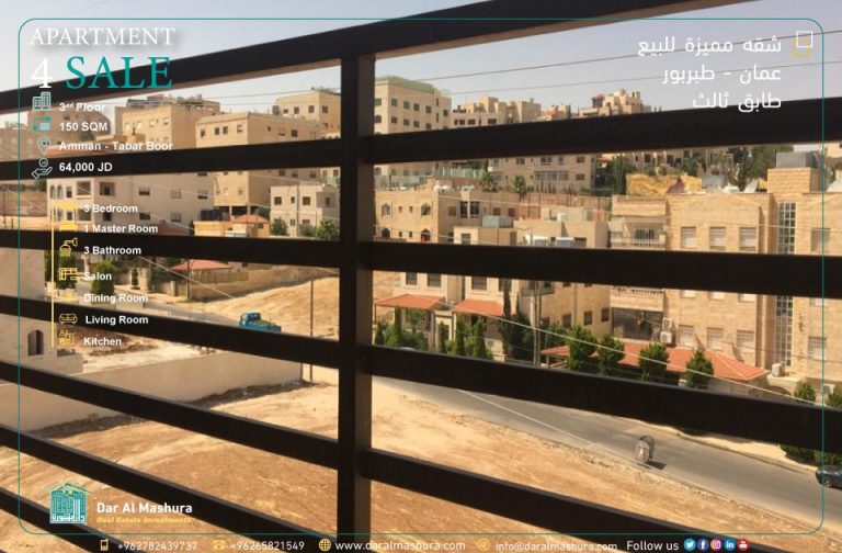 مساحة الشقة: 150 متر – طابق ثالث
