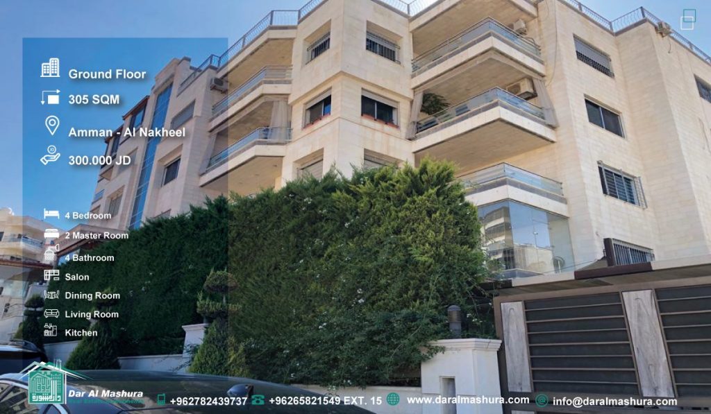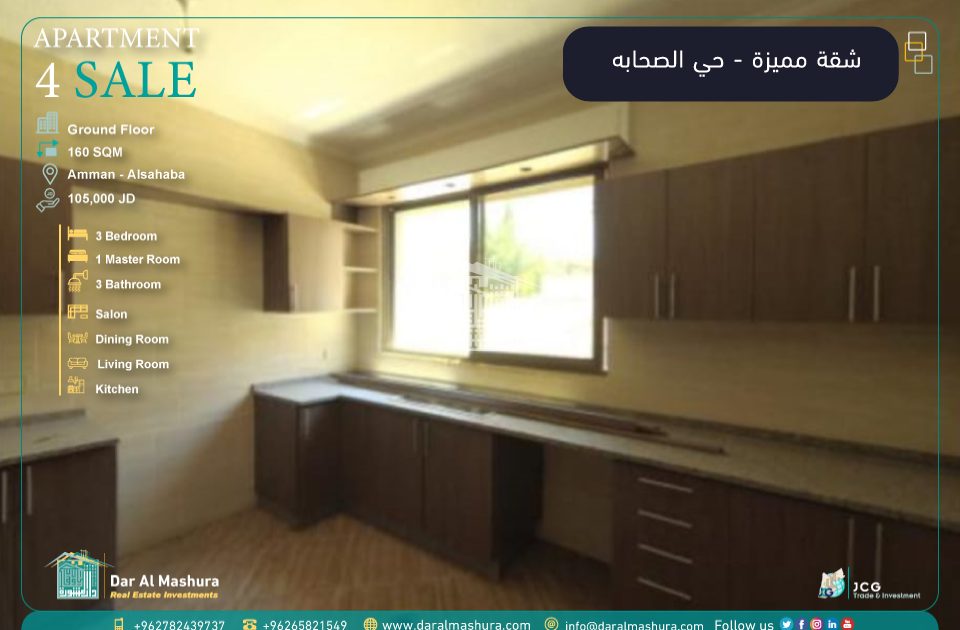 مساحة الشقة: 160 متر – الطابق الارضي