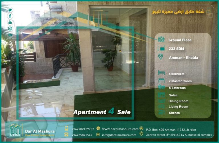 شقة طابق ارضي للبيع