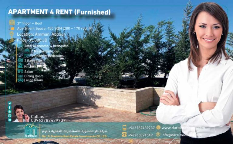 مساحة الشقة مع الروف 450 متر (280 م الشقة و 170 م الروف)