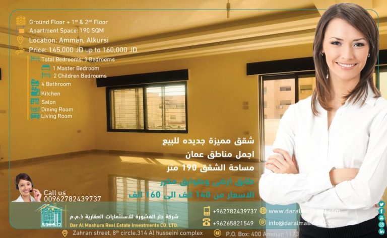 مساحة الشقق 190 متر