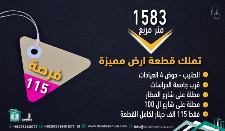 فرصة عقارية – ارض مميزة بسعر مغري للبيع الطنيب, الطنيب وصف العقار فرصة عقارية ارض مميزة بسعر مغري للبيع مساحتها 1583 متر عمان – الطنيب حوض 4 العيادات بلاقرب من جامعة الدراسات مطلة على شارع المطار مطلة على شارع ال 100 لمزيد من المعلومات 0782439737 مشاركة : مزايا العقار شارع رئيسيشوارع معبدهمخدومة تواصل مع المالك الإسم الكامل* بريدك الالكتروني* رسالتك* إرسال رسالة خاصة عقارات متشابهة للبيع700,000 دينارللبيعالسعر غير معلنللبيع300,000 دينار