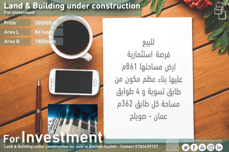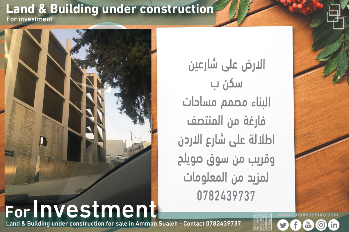 للاستثمار ارض مع عمارة عظم عمان صوليح