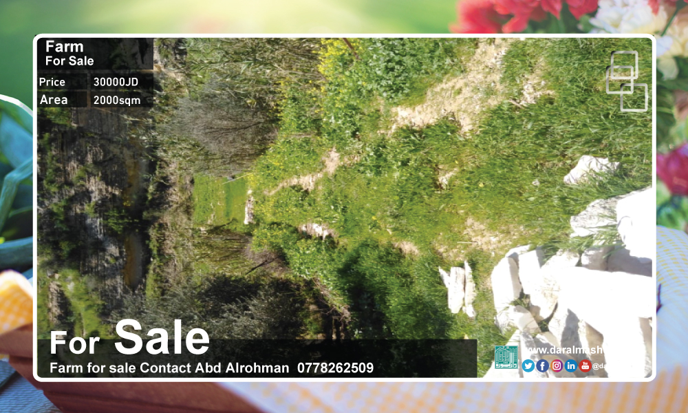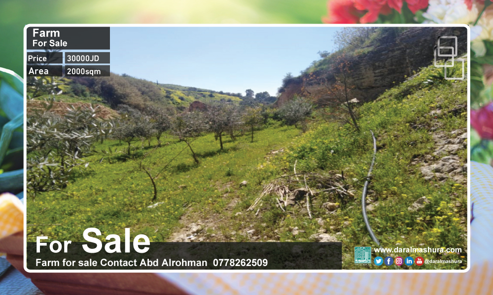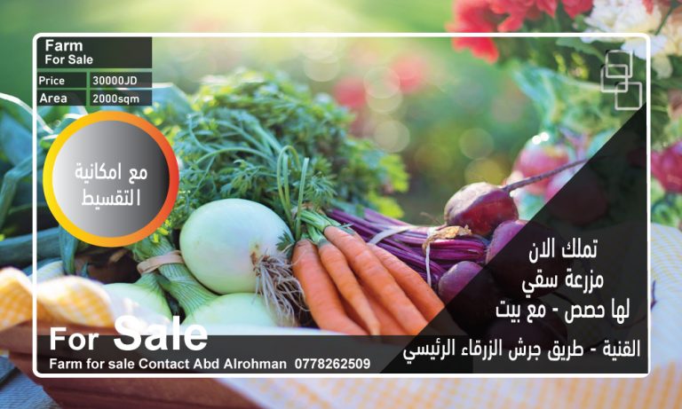 مزرعة سقي للبيع – القنية القنية, القنية وصف العقار مزرعة مع بيت للبيع ممكن التقسيط مساحة المزرعة 2 ونم مزرعة سقي بحصص جميع الخدمات متوفرة طريق جرش الزرقاء الرئيسي – القنية بسعر 30 الف دينار لمزيد من المعلومات عبد الرحمن الزيود 0778262509 مشاركة : مزايا العقار الخدمات متوفرة تواصل مع المالك الإسم الكامل* بريدك الالكتروني* رسالتك* إرسال رسالة خاصة عقارات متشابهة للبيع55,000 دينارللبيع125,000 دينارللبيع55,000 دينار